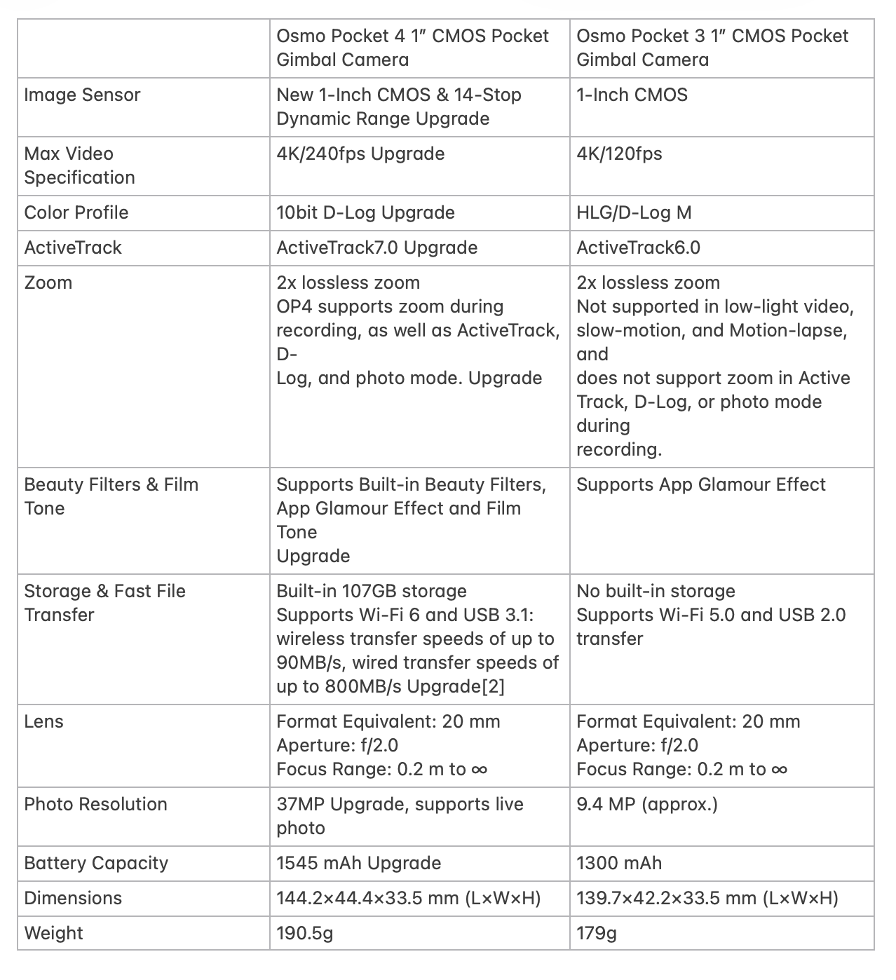 DJI Osmo Pocket 4 vs Pocket 3 Comparison